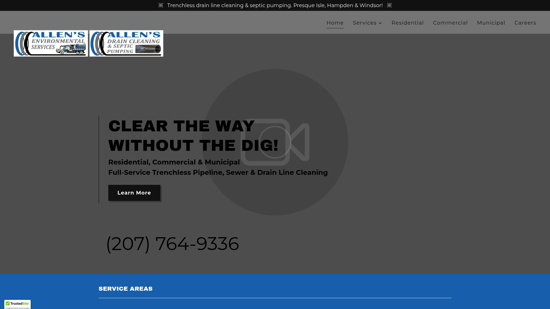 Allen's focuses on trenchless pipeline, sewer, and drain line cleaning across Central and Northern Maine using modern equipment to avoid digging. They also provide hydro excavation, catch basin and culvert cleaning, trenchless pipe installation, and municipal level cleaning and repairs.